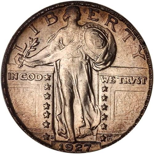 Mintage of 396,000. It is not often that you see more than one of this date in an auction but here it is. Nicely struck and fully brilliant except where it is turning gold near the rims, with an absolute minimum of light minor marks expected on a coin of this grade. In a first generation PCGS holder. Bids $6300 and trends $10,000.