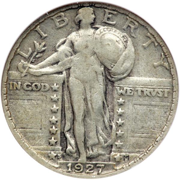1927-S Liberty Standing Quarter Dollar. NGC graded VF-25. Scarcer date in higher grades.