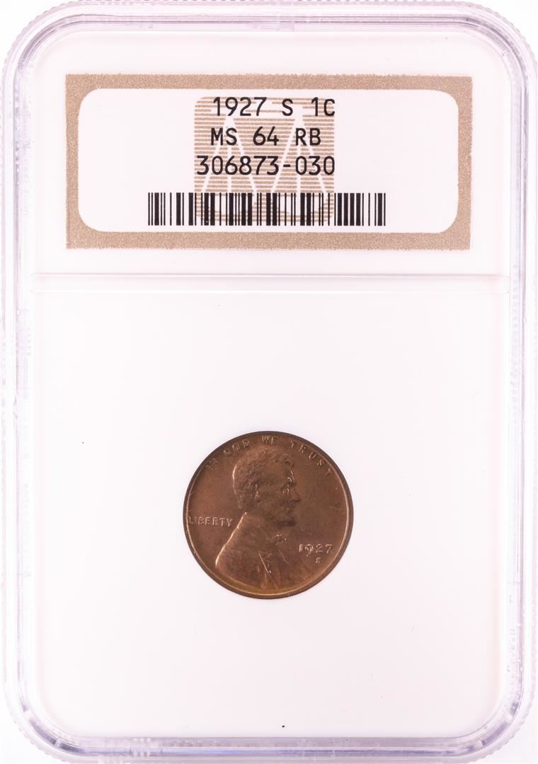 One 1927-S Lincoln Wheat Cent Coin NGC MS64RB. NGC Certified.