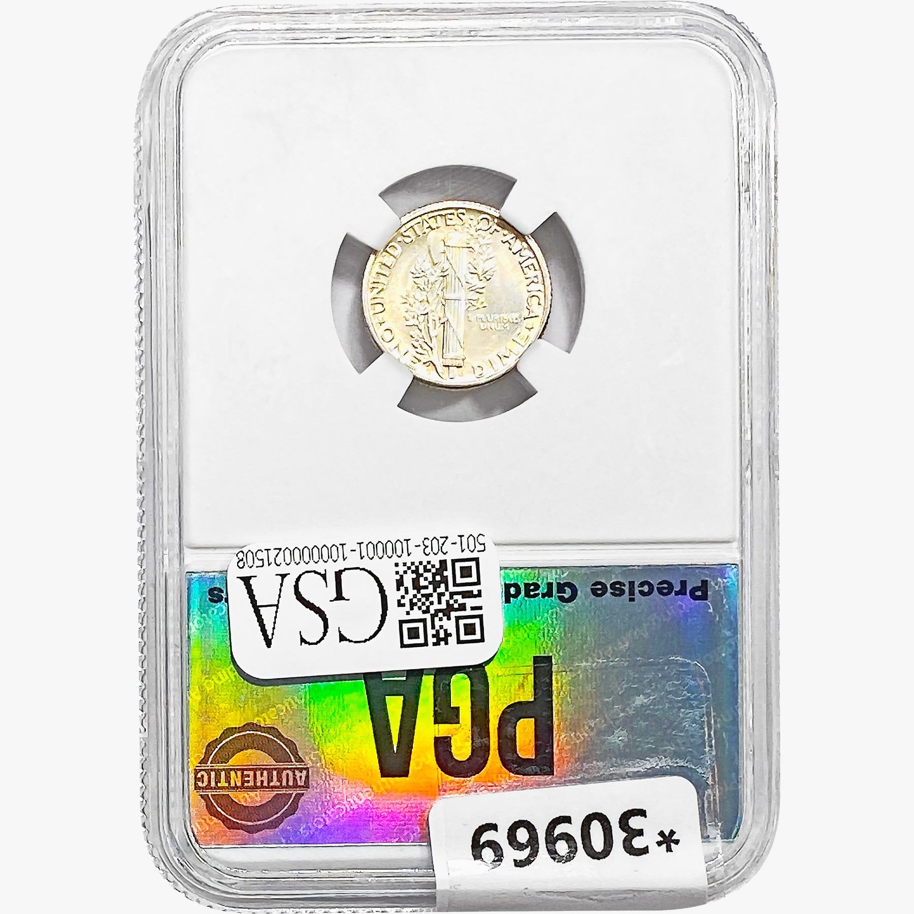 COINS AND CURRENCY LISTED IN GSA’S CATALOG AS GRADED AND ENCAPSULATED BY PCGS, NGC, ANACS, ICG, PCGS CURRENCY, PMG, PCGS BANKNOTE GRADING, CMC OR ANY OTHER THIRD-PARTY GRADING SERVICE ARE LIKEWISE SOLD “AS-IS” EXCEPT AS EXPRESSLY SET FORTH HEREIN. ALL THIRD-PARTY GRADING SERVICE GUARANTEES, INCLUDING AUTHENTICITY, ARE THE SOLE RESPONSIBILITY OF THE THIRD-PARTY GRADING SERVICE AND NOT WARRANTIES OR GUARANTEES OF GSA. BIDDERS SHOULD CONTACT THESE THIRD-PARTY GRADING SERVICES DIRECTLY WITH RESPECT TO ANY CLAIMS OR QUESTIONS THEY MAY HAVE CONCERNING THEIR GUARANTEES AND WARRANTIES. BIDDERS ACKNOWLEDGE AND AGREE THAT AUCTIONEER IS NOT BOUND BY OR LIABLE FOR ANY OPINION OR CERTIFICATION BY ANY THIRD-PARTY GRADING SERVICE. REMOVAL OF A PRODUCT FROM ITS PROTECTIVE CASING OR HOLDER OR ALTERATION OF ANY COIN HOLDER WAIVES ALL RIGHTS CONCERNING THE PRODUCT CONTAINED THEREIN.