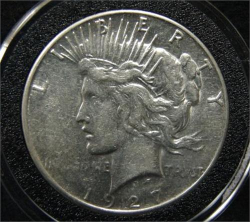 1927-S U.S. PEACE DOLLAR. Coin is in circular case.