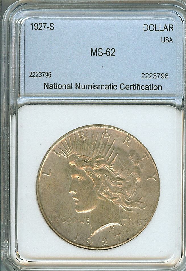 1927-S PEACE SILVER DOLLAR NNC MS62
