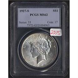 Peace Dollars 1927-s PCGS graded Mint State 62. <b>Well struck. Lustrous, with a blush of golden toning.</b> <p align="center">Superior Galleries was founded in 1929 and has been a leader in