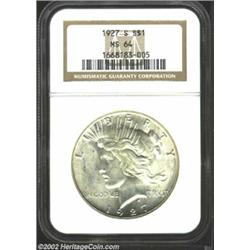 1927-S S$1 MS64 NGC. Dusky green-gold color. A boldly struck near-Gem that has flashy luster and imm