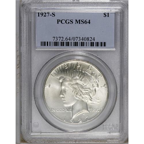 <B>1927-S<img border='0' src='http://www.heritagecoins.com/images/star.gif' width=10 height=10>$1> MS64 PCGS.</B></I> VAM-3. A Top 50 Variety. Well struck throughout the devices and legends, and the nearly brilliant surfaces have surprisingly few marks. A lower mintage issue seldom seen any finer.
