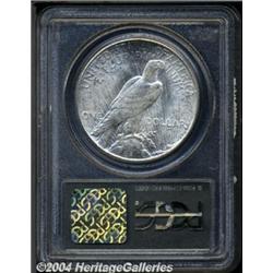 <B>1927-S<S$1> MS64 PCGS.</B></I> Speckled olive and lavender toning adheres to lustrous surfaces. A few small abrasions limit the grade on this S-mint Peace dollar. <BR><BR><B>Important notice:</B> Heritage usually auctions material at the rate of 200-250 lots per hour. On some occasions eBay Live bid software or the Internet may not be able to keep up with the pace of the auction. We recommend placing a realistic absentee bid now as insurance to avoid disappointment. Occasionally the auctioneer may eliminate or reject an eBay Live bid, and the auctioneer may also reopen a lot after the close of the eBay live bidding (usually because we missed an audience bid), and may reject your bid even if it shows you as the winning bidder. By bidding via eBay Live, you agree that Heritage may award the lot to another bidder at its sole discretion under the circumstances described above or any other reasonable circumstances. Since eBay bids are not shown to us until we open the lot on the floor, we treat those bids just like floor bids. In most cases the floor responds before the eBay bid is presented to us, due to Internet lag time, so for consistency we have made it a policy that floor bids are always considered first over tie eBay live bids. Also please note that all Heritage lots purchased through eBay Live carry a 20% Buyer's Premium. Please make sure you read the Terms and Conditions before you bid. </span></font></tr></table></td></tr></table>