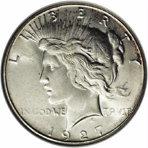 <B>1927-S<img border='0' src='http://www.heritagecoins.com/images/star.gif' width=10 height=10>$1> MS65 NGC.</B></I> The surfaces of this conditionally scarce S-mint are exceedingly lustrous and boast creamy, virtually unabraded central devices. Delicate golden highlights are noticeable at the peripheries on the obverse and reverse. Census: 61 in 65, 1 finer (4/06).