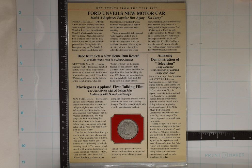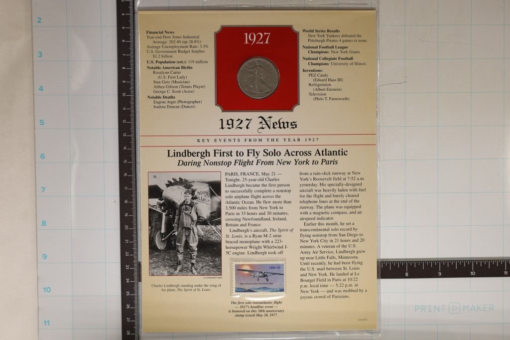 CARD WITH 13 CENT UNCANCELLED STAMP, LINDBERGH FIRST TO FLY SOLO ACROSS ATLANTIC IN PLASTIC SLEEVE