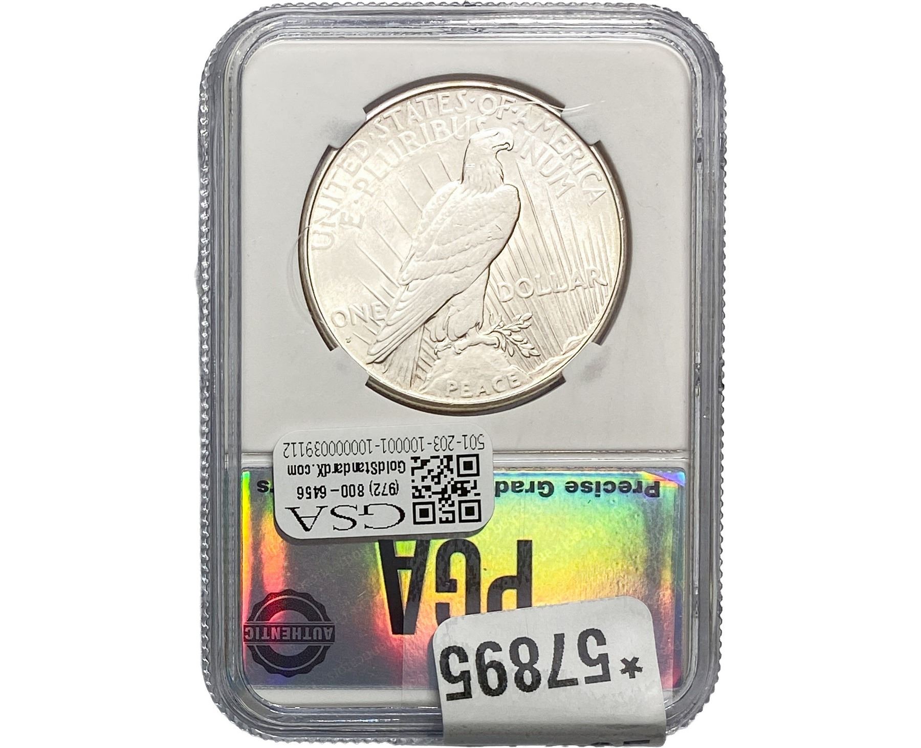 COINS AND CURRENCY LISTED IN GSA’S CATALOG AS GRADED AND ENCAPSULATED BY PCGS, NGC, ANACS, ICG, PCGS CURRENCY, PMG, PCGS BANKNOTE GRADING, CMC OR ANY OTHER THIRD-PARTY GRADING SERVICE ARE LIKEWISE SOLD “AS-IS” EXCEPT AS EXPRESSLY SET FORTH HEREIN. ALL THIRD-PARTY GRADING SERVICE GUARANTEES, INCLUDING AUTHENTICITY, ARE THE SOLE RESPONSIBILITY OF THE THIRD-PARTY GRADING SERVICE AND NOT WARRANTIES OR GUARANTEES OF GSA. BIDDERS SHOULD CONTACT THESE THIRD-PARTY GRADING SERVICES DIRECTLY WITH RESPECT TO ANY CLAIMS OR QUESTIONS THEY MAY HAVE CONCERNING THEIR GUARANTEES AND WARRANTIES. BIDDERS ACKNOWLEDGE AND AGREE THAT AUCTIONEER IS NOT BOUND BY OR LIABLE FOR ANY OPINION OR CERTIFICATION BY ANY THIRD-PARTY GRADING SERVICE. REMOVAL OF A PRODUCT FROM ITS PROTECTIVE CASING OR HOLDER OR ALTERATION OF ANY COIN HOLDER WAIVES ALL RIGHTS CONCERNING THE PRODUCT CONTAINED THEREIN.