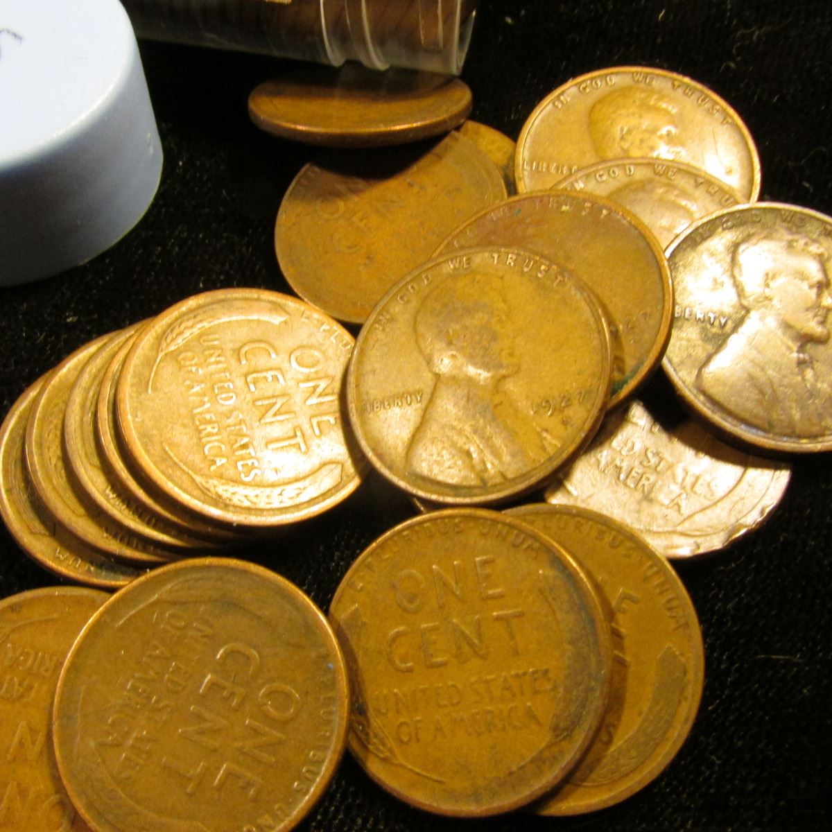 1927 S Solid-date Roll of Lincoln Cents (more than 50 pcs.) Grades up to Fine.