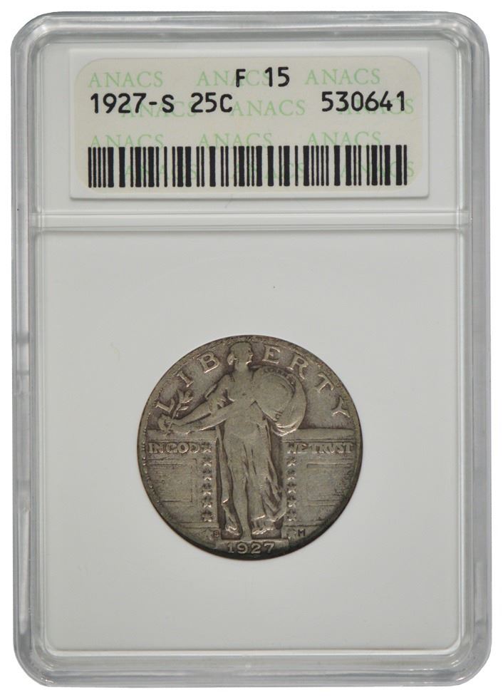 One 1927-S Standing Liberty Quarter ANACS F15.