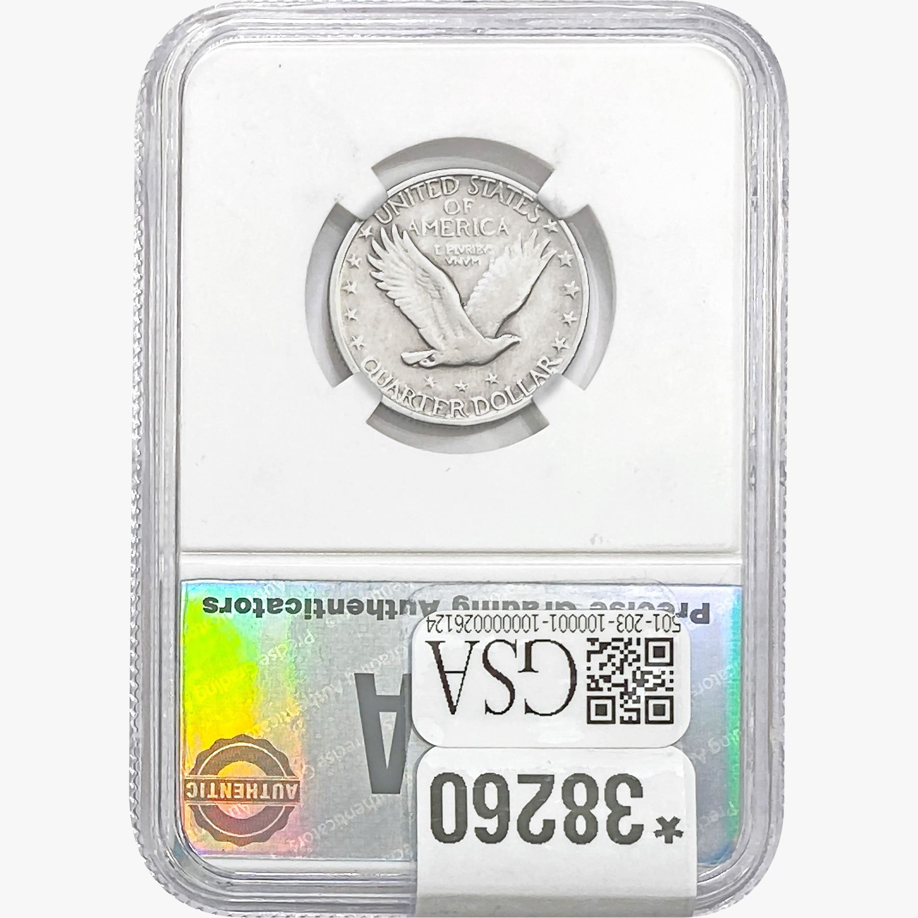 COINS AND CURRENCY LISTED IN GSA’S CATALOG AS GRADED AND ENCAPSULATED BY PCGS, NGC, ANACS, ICG, PCGS CURRENCY, PMG, PCGS BANKNOTE GRADING, CMC OR ANY OTHER THIRD-PARTY GRADING SERVICE ARE LIKEWISE SOLD “AS-IS” EXCEPT AS EXPRESSLY SET FORTH HEREIN. ALL THIRD-PARTY GRADING SERVICE GUARANTEES, INCLUDING AUTHENTICITY, ARE THE SOLE RESPONSIBILITY OF THE THIRD-PARTY GRADING SERVICE AND NOT WARRANTIES OR GUARANTEES OF GSA. BIDDERS SHOULD CONTACT THESE THIRD-PARTY GRADING SERVICES DIRECTLY WITH RESPECT TO ANY CLAIMS OR QUESTIONS THEY MAY HAVE CONCERNING THEIR GUARANTEES AND WARRANTIES. BIDDERS ACKNOWLEDGE AND AGREE THAT AUCTIONEER IS NOT BOUND BY OR LIABLE FOR ANY OPINION OR CERTIFICATION BY ANY THIRD-PARTY GRADING SERVICE. REMOVAL OF A PRODUCT FROM ITS PROTECTIVE CASING OR HOLDER OR ALTERATION OF ANY COIN HOLDER WAIVES ALL RIGHTS CONCERNING THE PRODUCT CONTAINED THEREIN.
