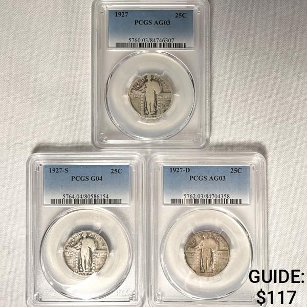 1927 Set (3) Standing Liberty Quarter PCGS-AG3,