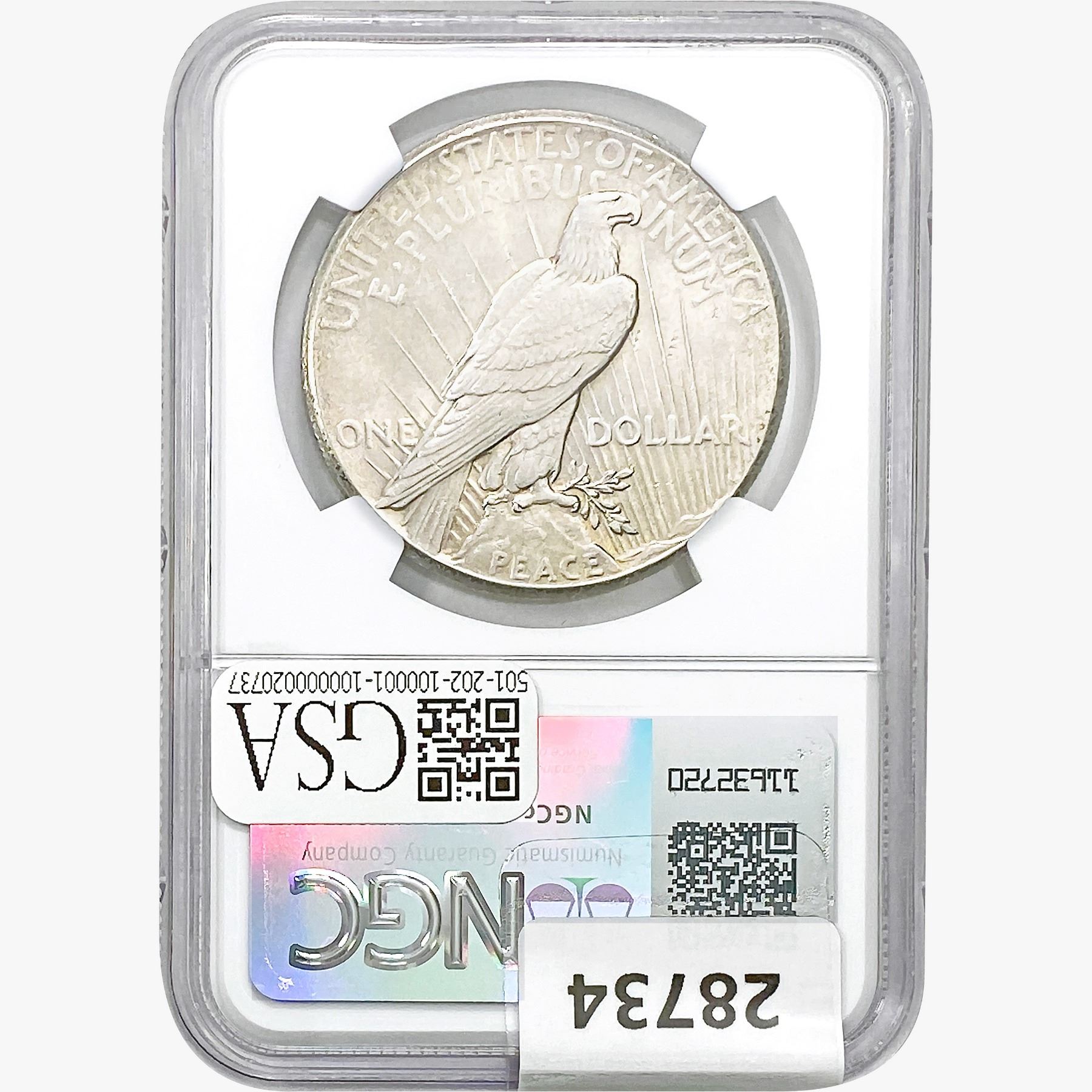 COINS AND CURRENCY LISTED IN GSA’S CATALOG AS GRADED AND ENCAPSULATED BY PCGS, NGC, ANACS, ICG, PCGS CURRENCY, PMG, PCGS BANKNOTE GRADING, CMC OR ANY OTHER THIRD-PARTY GRADING SERVICE ARE LIKEWISE SOLD “AS-IS” EXCEPT AS EXPRESSLY SET FORTH HEREIN. ALL THIRD-PARTY GRADING SERVICE GUARANTEES, INCLUDING AUTHENTICITY, ARE THE SOLE RESPONSIBILITY OF THE THIRD-PARTY GRADING SERVICE AND NOT WARRANTIES OR GUARANTEES OF GSA. BIDDERS SHOULD CONTACT THESE THIRD-PARTY GRADING SERVICES DIRECTLY WITH RESPECT TO ANY CLAIMS OR QUESTIONS THEY MAY HAVE CONCERNING THEIR GUARANTEES AND WARRANTIES. BIDDERS ACKNOWLEDGE AND AGREE THAT AUCTIONEER IS NOT BOUND BY OR LIABLE FOR ANY OPINION OR CERTIFICATION BY ANY THIRD-PARTY GRADING SERVICE. REMOVAL OF A PRODUCT FROM ITS PROTECTIVE CASING OR HOLDER OR ALTERATION OF ANY COIN HOLDER WAIVES ALL RIGHTS CONCERNING THE PRODUCT CONTAINED THEREIN.
