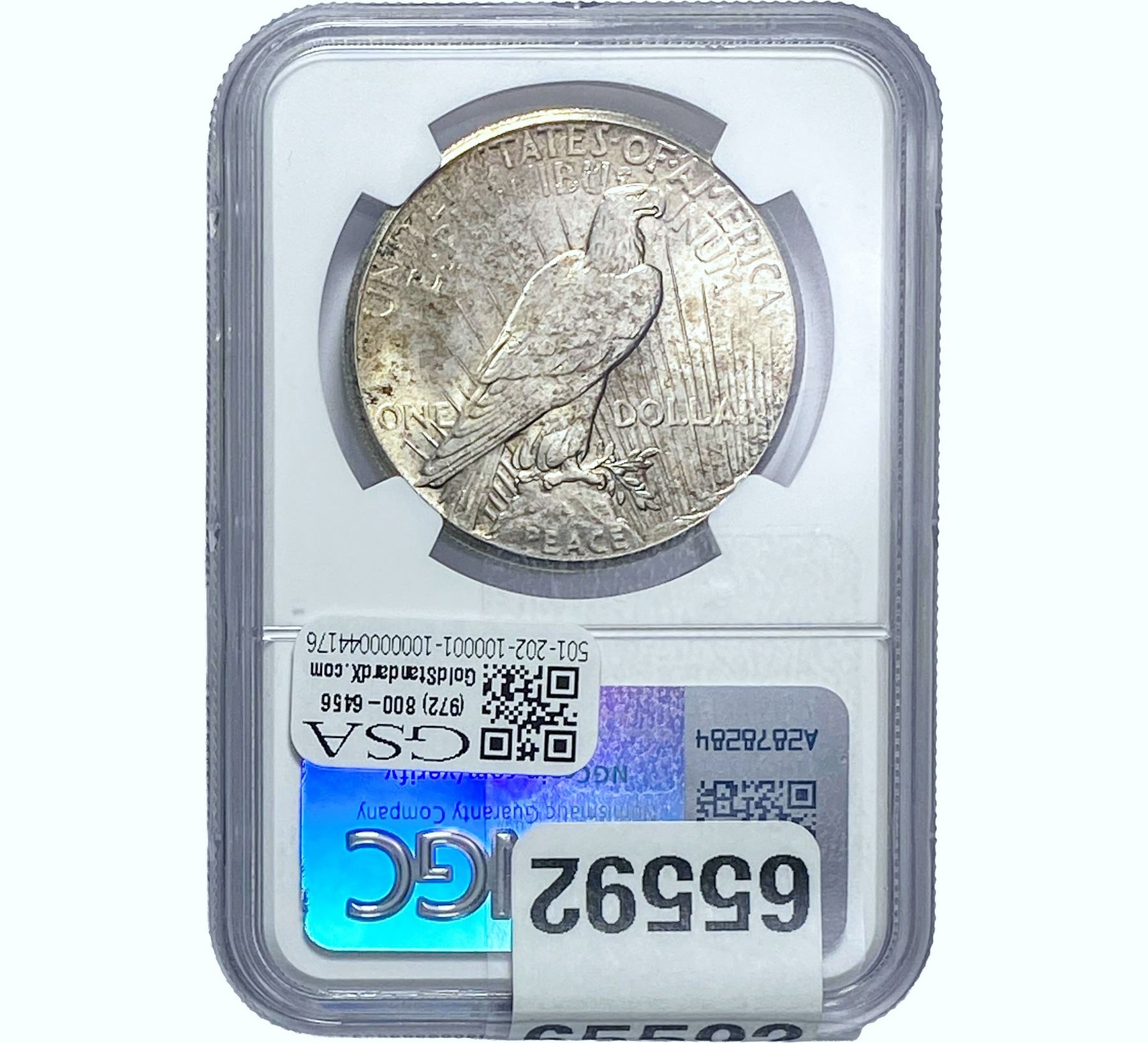 l. All non-certified coins and currency are guaranteed genuine, but are not guaranteed as to grade, since grading is a matter of opinion, an art and not a science, and therefore the description rendered by GSA or any third-party grading service may not agree with the opinion of others (including trained experts), and the same expert may not grade the same item with the same grade at two different times. GSA may, but is not obligated to, express an opinion as to non-certified numismatic items, in GSA’s opinion, or by its employees’ experience and the current interpretation of the American Numismatic Association’s standards as of the date the catalog was prepared. There is no guarantee or warranty expressed or implied that the grading opinions utilized by GSA, if any, will meet the standards of any grading service at any time in the future.