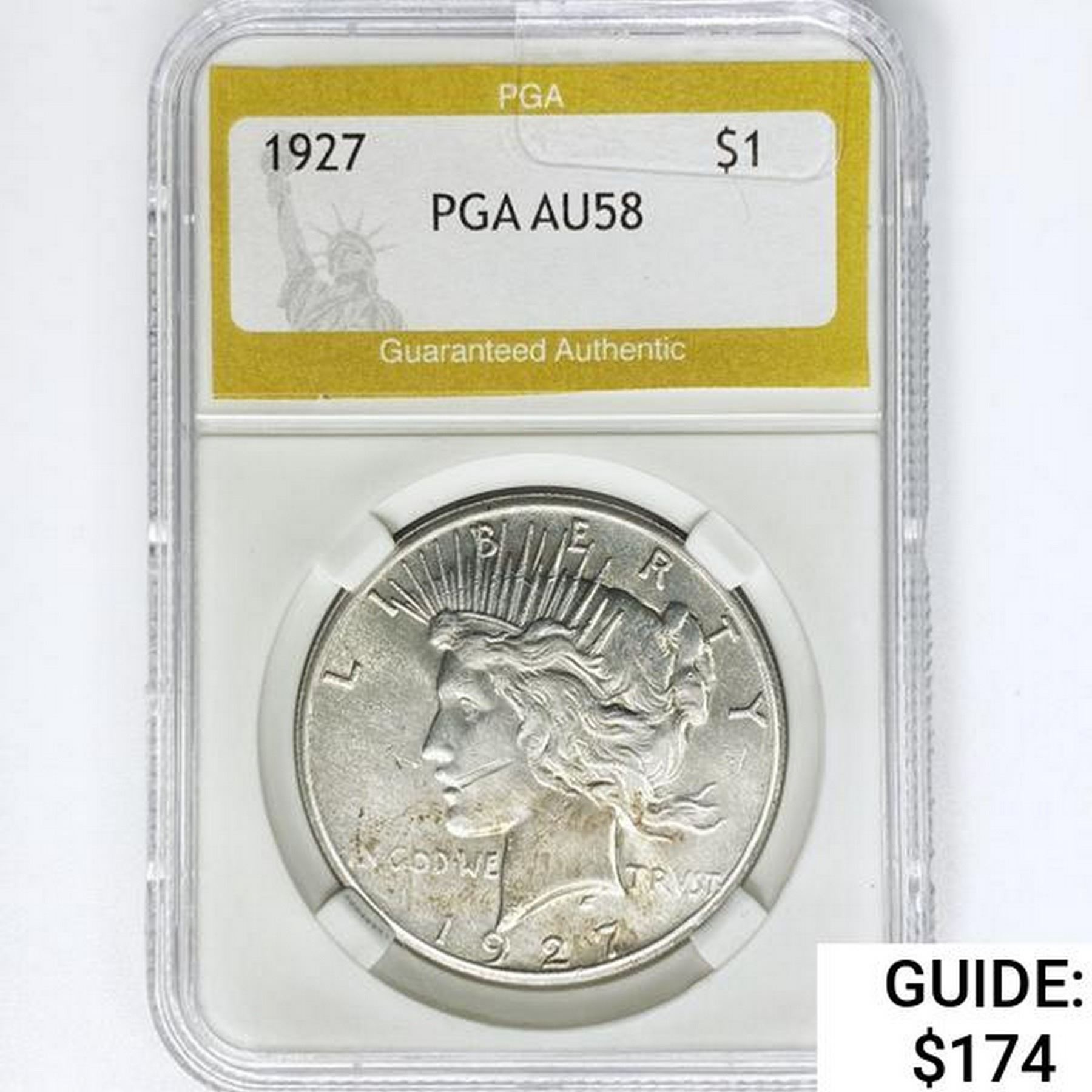 1927 Silver Peace Dollar PGA AU58