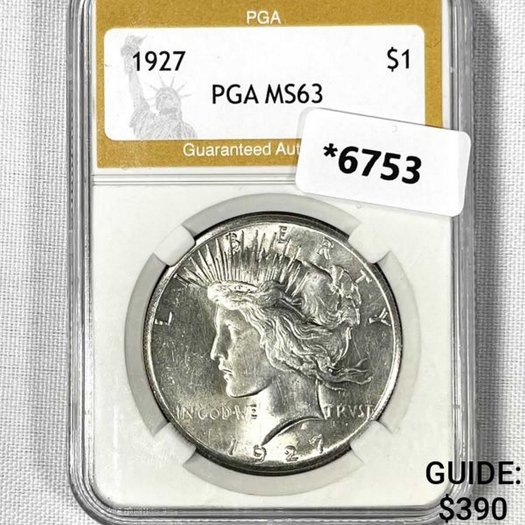 1927 Silver Peace Dollar PGA-MS63