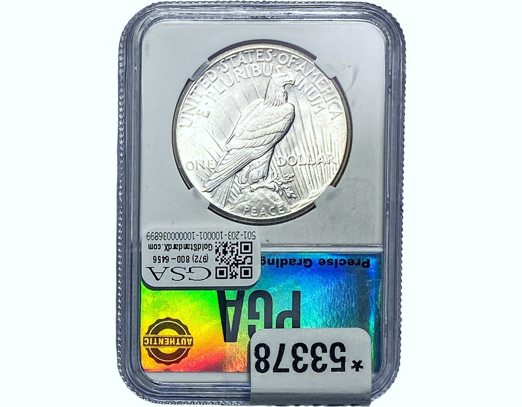 COINS AND CURRENCY LISTED IN GSA’S CATALOG AS GRADED AND ENCAPSULATED BY PCGS, NGC, ANACS, ICG, PCGS CURRENCY, PMG, PCGS BANKNOTE GRADING, CMC OR ANY OTHER THIRD-PARTY GRADING SERVICE ARE LIKEWISE SOLD “AS-IS” EXCEPT AS EXPRESSLY SET FORTH HEREIN. ALL THIRD-PARTY GRADING SERVICE GUARANTEES, INCLUDING AUTHENTICITY, ARE THE SOLE RESPONSIBILITY OF THE THIRD-PARTY GRADING SERVICE AND NOT WARRANTIES OR GUARANTEES OF GSA. BIDDERS SHOULD CONTACT THESE THIRD-PARTY GRADING SERVICES DIRECTLY WITH RESPECT TO ANY CLAIMS OR QUESTIONS THEY MAY HAVE CONCERNING THEIR GUARANTEES AND WARRANTIES. BIDDERS ACKNOWLEDGE AND AGREE THAT AUCTIONEER IS NOT BOUND BY OR LIABLE FOR ANY OPINION OR CERTIFICATION BY ANY THIRD-PARTY GRADING SERVICE. REMOVAL OF A PRODUCT FROM ITS PROTECTIVE CASING OR HOLDER OR ALTERATION OF ANY COIN HOLDER WAIVES ALL RIGHTS CONCERNING THE PRODUCT CONTAINED THEREIN.