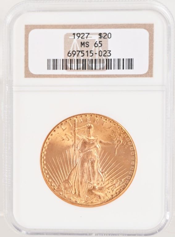 1927 St. Gaudens $20 Gold Coin NGC MS65