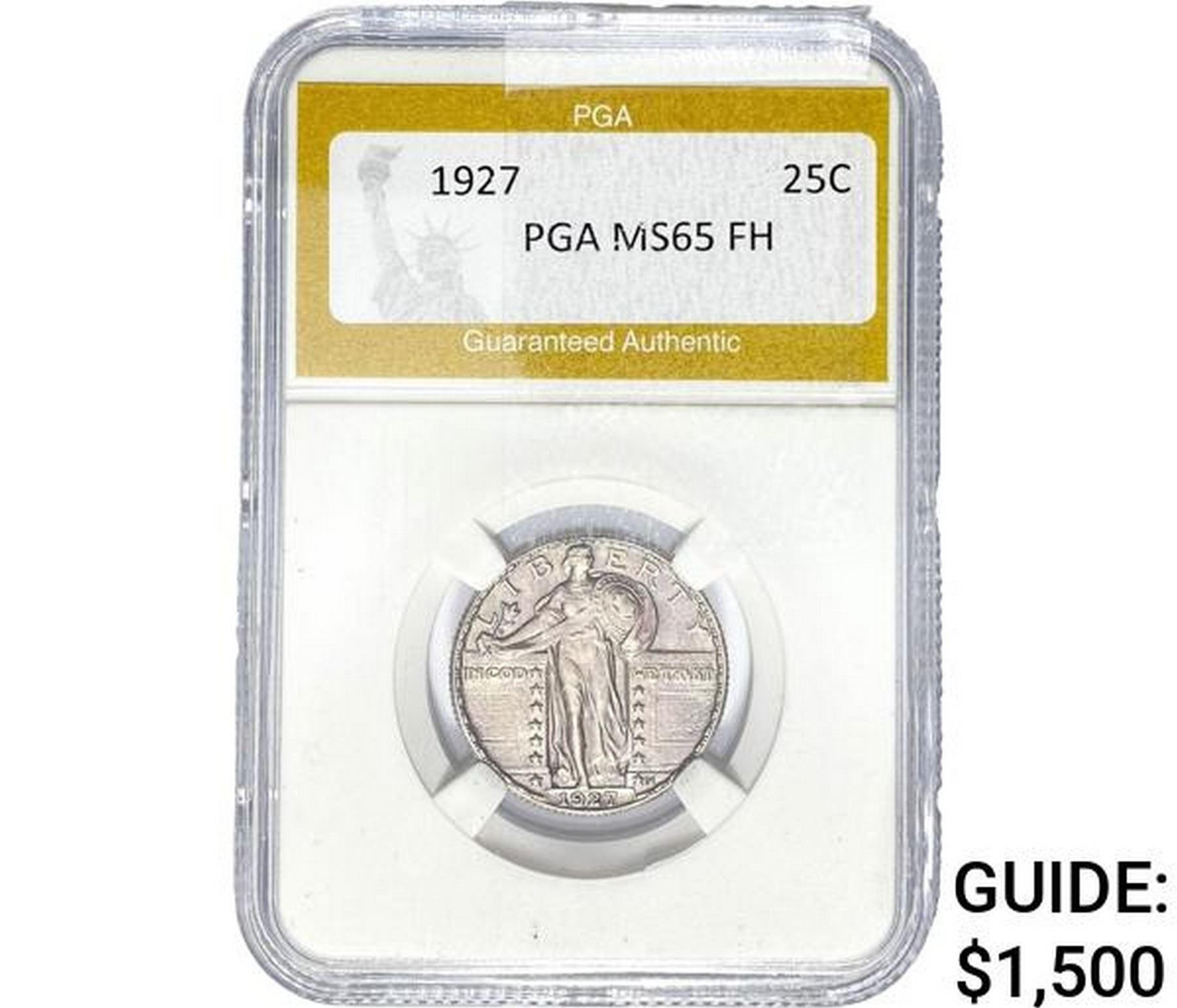 COINS AND CURRENCY LISTED IN GSA’S CATALOG AS GRADED AND ENCAPSULATED BY PCGS, NGC, ANACS, ICG, PCGS CURRENCY, PMG, PCGS BANKNOTE GRADING, CMC OR ANY OTHER THIRD-PARTY GRADING SERVICE ARE LIKEWISE SOLD “AS-IS” EXCEPT AS EXPRESSLY SET FORTH HEREIN. ALL THIRD-PARTY GRADING SERVICE GUARANTEES, INCLUDING AUTHENTICITY, ARE THE SOLE RESPONSIBILITY OF THE THIRD-PARTY GRADING SERVICE AND NOT WARRANTIES OR GUARANTEES OF GSA. BIDDERS SHOULD CONTACT THESE THIRD-PARTY GRADING SERVICES DIRECTLY WITH RESPECT TO ANY CLAIMS OR QUESTIONS THEY MAY HAVE CONCERNING THEIR GUARANTEES AND WARRANTIES. BIDDERS ACKNOWLEDGE AND AGREE THAT AUCTIONEER IS NOT BOUND BY OR LIABLE FOR ANY OPINION OR CERTIFICATION BY ANY THIRD-PARTY GRADING SERVICE. REMOVAL OF A PRODUCT FROM ITS PROTECTIVE CASING OR HOLDER OR ALTERATION OF ANY COIN HOLDER WAIVES ALL RIGHTS CONCERNING THE PRODUCT CONTAINED THEREIN.
