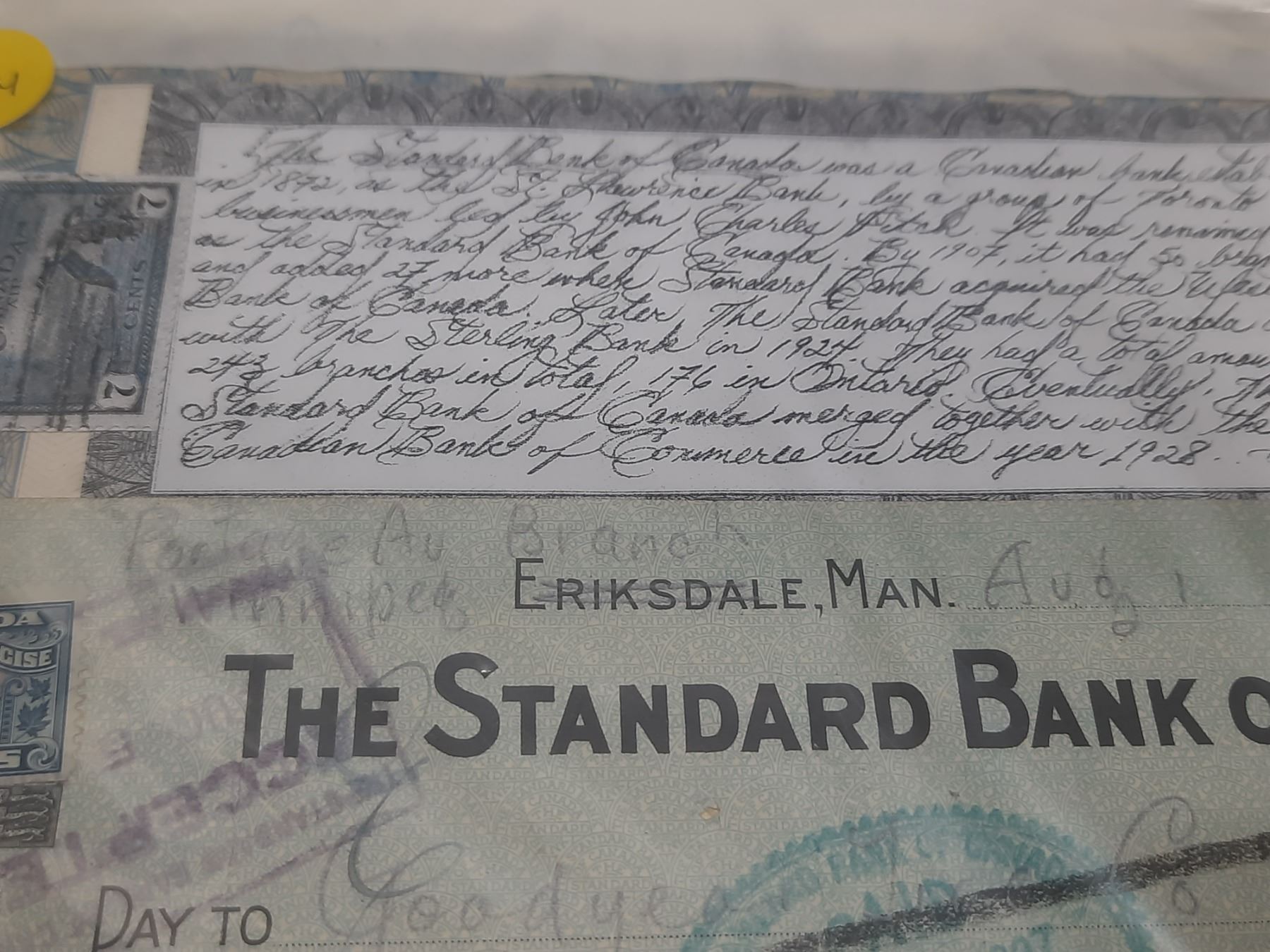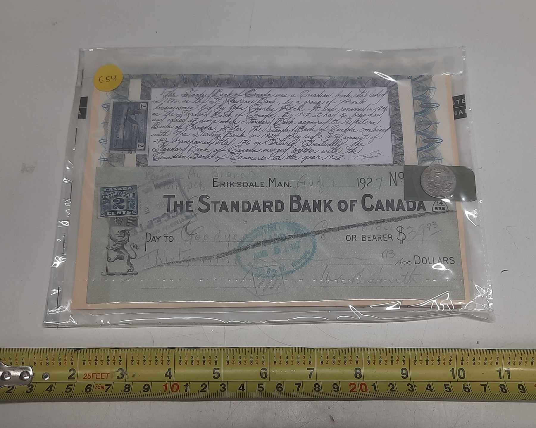 1927 The Standard Bank of Canada Cheque
