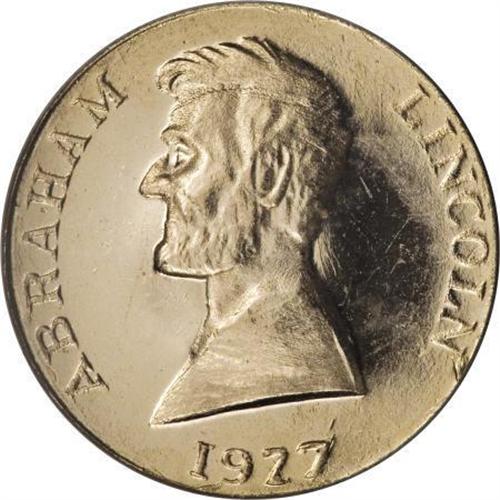 <B>1927 Thomas Elder Gold Lincoln Token Uncertified.</B></I> K-1043. Gold, 15 mm, 2.9 gm. Small gold token produced by well-known coin dealer Thomas Elder<B> </B></I>late in his career. The obverse has a bust of Lincoln facing left with inscription Abraham Lincoln 1927. The reverse has a wreath with the inscription A TOKEN.<BR><BR><b>Shipping:</b> Coins & Currency (<a target="_blank" href="http://www.heritageauctions.com/common/shipping.php">view shipping information</a>)