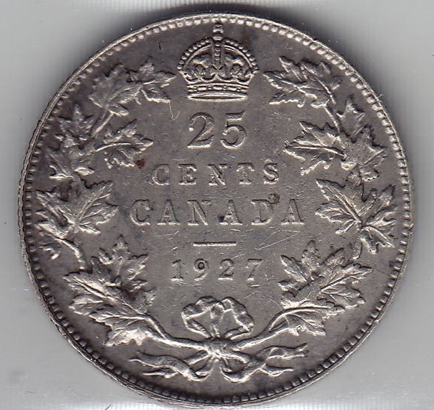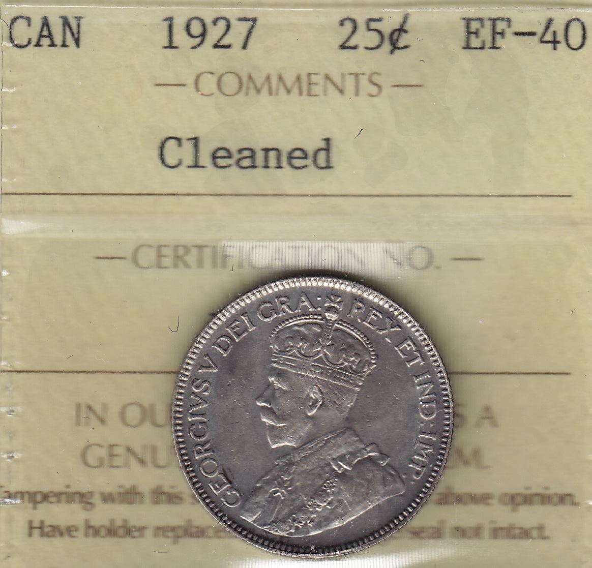 1927 Twenty Five Cent ICCS EF-40, Cleaned.