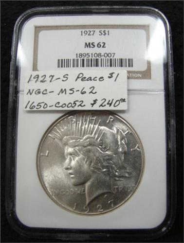 1927 U.S. PEACE DOLLAR. Graded by NGC. MS 62.