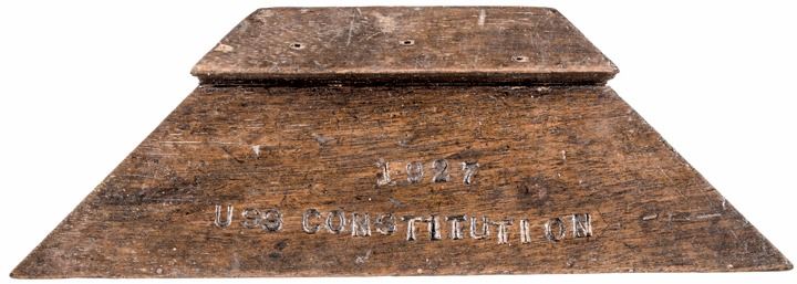 1927-Dated, USS CONSTITUTION Restoration Period, authentic Custom Made Wooden Section taken from USS CONSTITUTION, also known as “OLD IRONSIDES,” being removed directly from the Ship during its major restoration, Choice Extremely Fine.