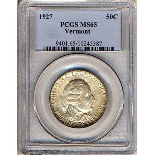 <b>1927 Vermont Half Dollar. PCGS graded MS65.</b> Light gold toning. Fully original with warm silvery radiance. A gem <b>(PCGS # 9401)</b> <i>