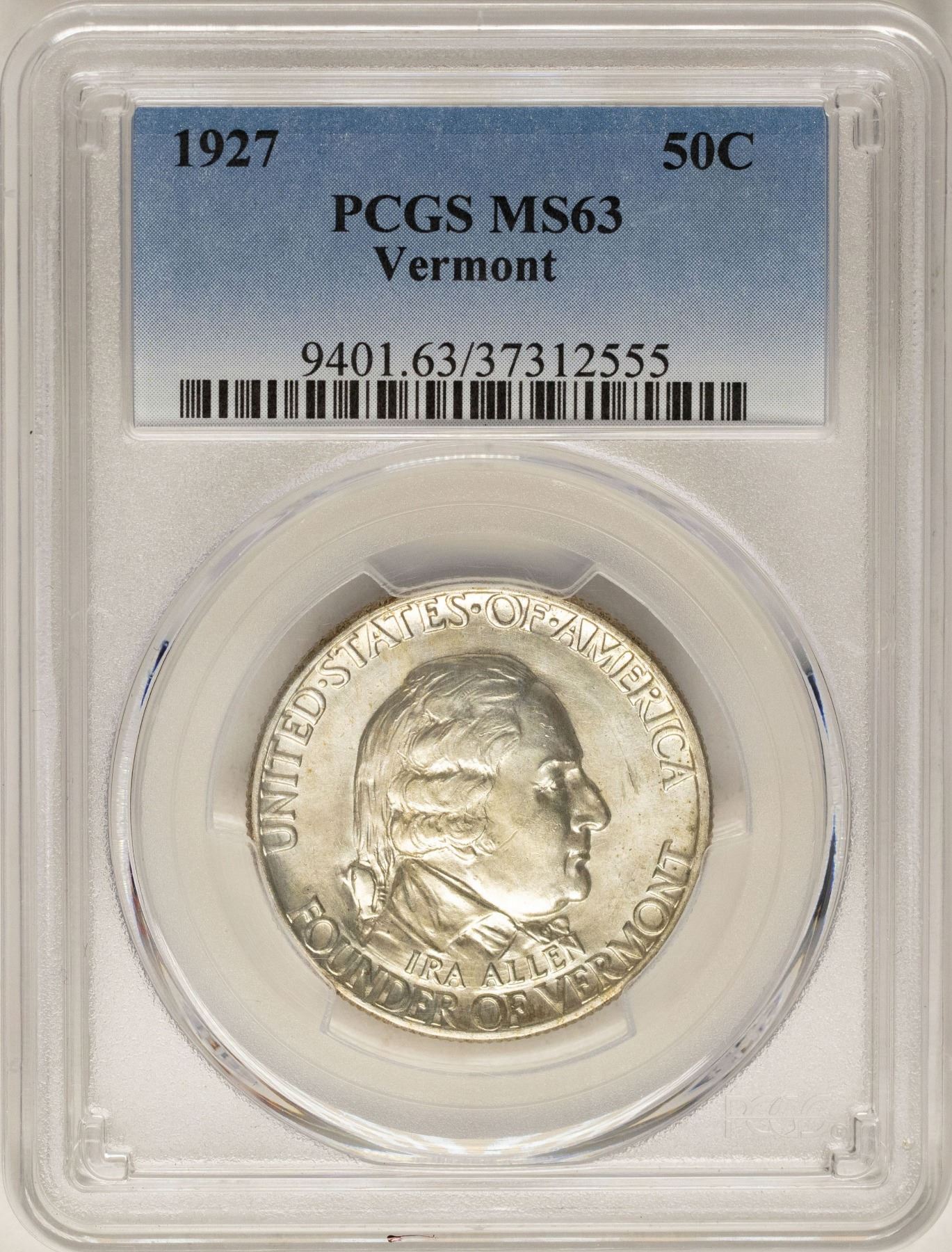 One 1927 Vermont Commemorative Half Dollar Coin PCGS MS63.