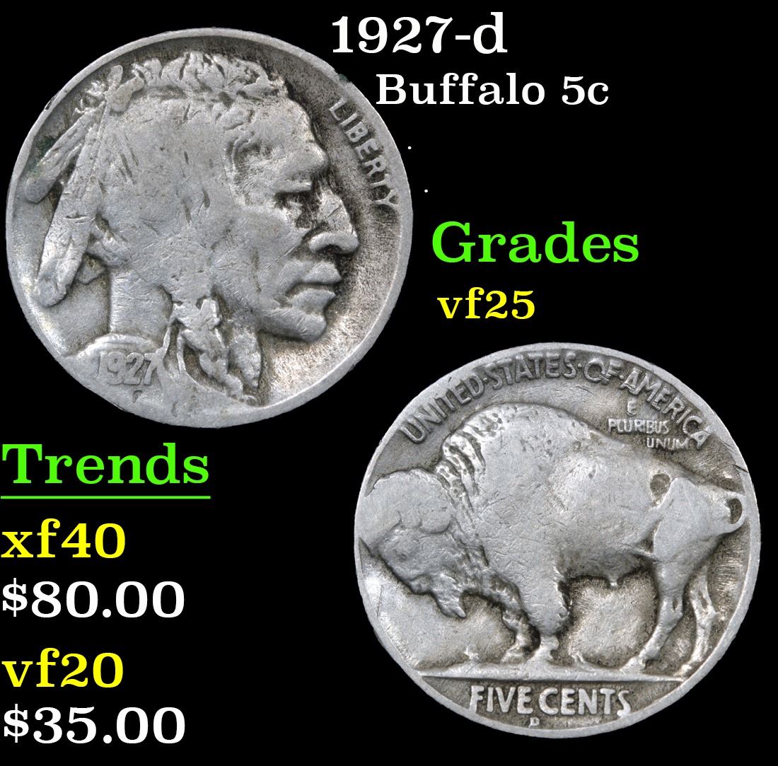 1927-d . . Buffalo Nickel 5c Grades vf+.