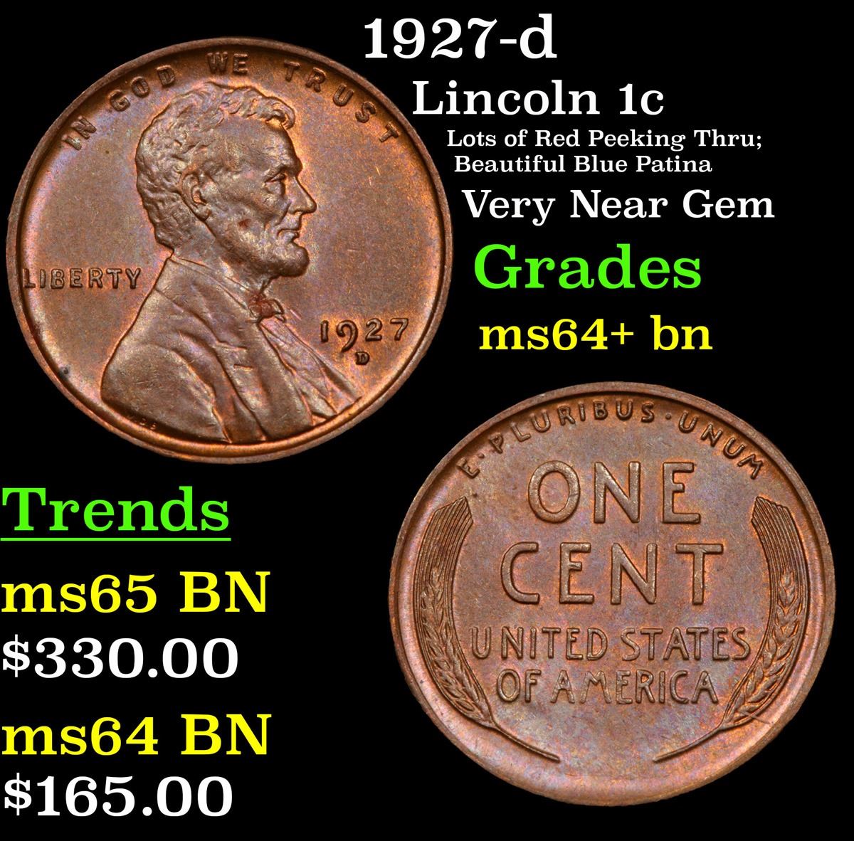 1927-d Lincoln Cent 1c Grades Choice+ Unc BN.
