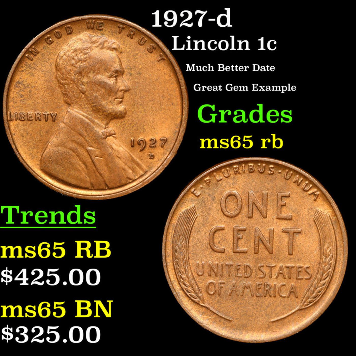 1927-d Lincoln Cent 1c Grades GEM Unc RB.