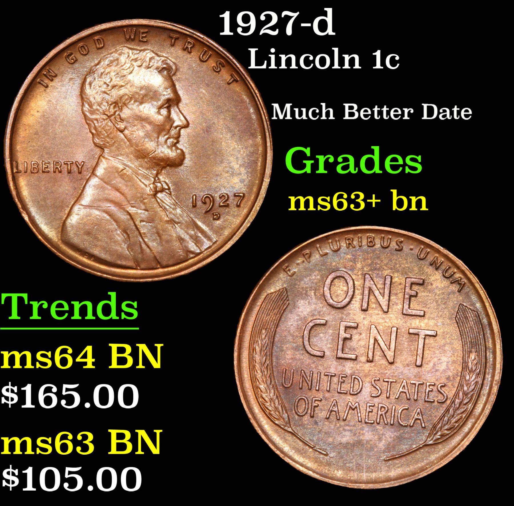 1927-d Much Better Date . Lincoln Cent 1c Grades Select+ Unc BN.
