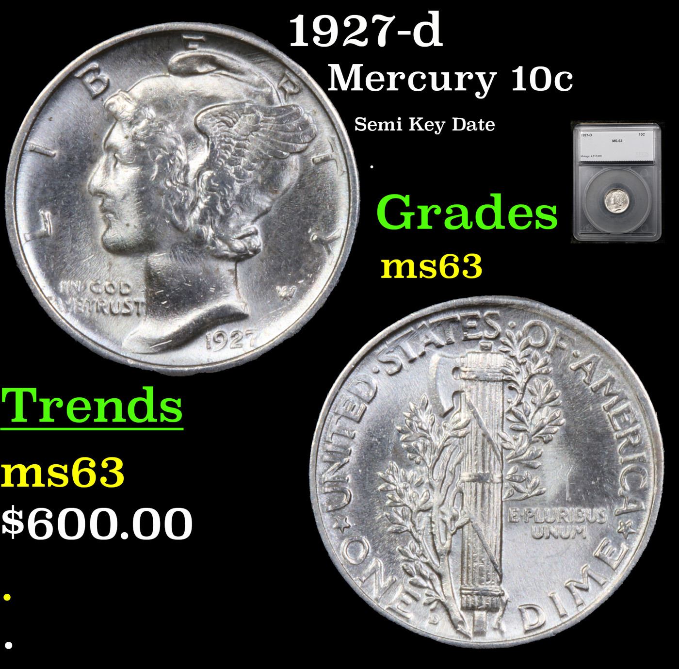 1927-d Mercury Dime 10c Graded ms63 By SEGS.