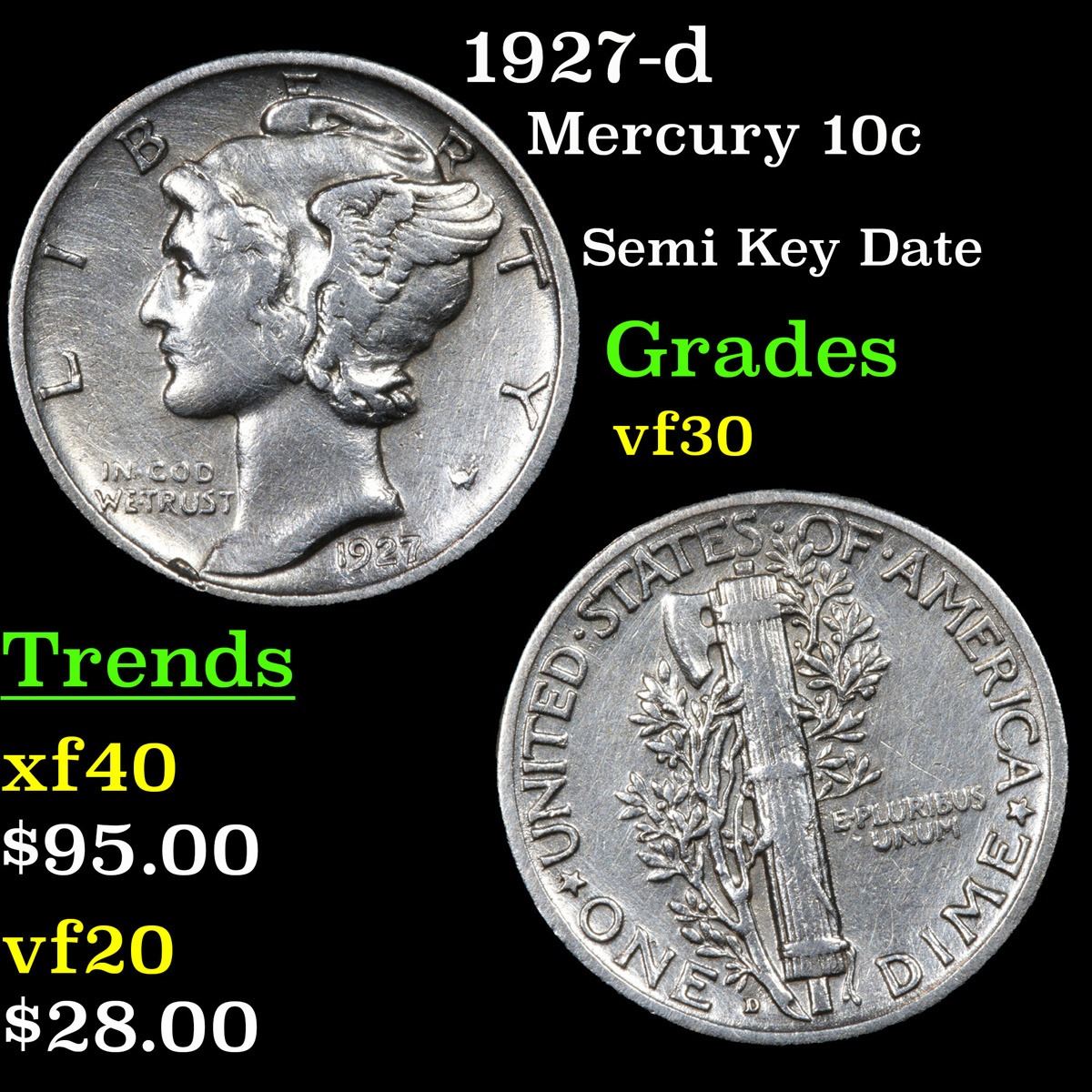 1927-d Semi Key Date . Mercury Dime 10c Grades vf++.