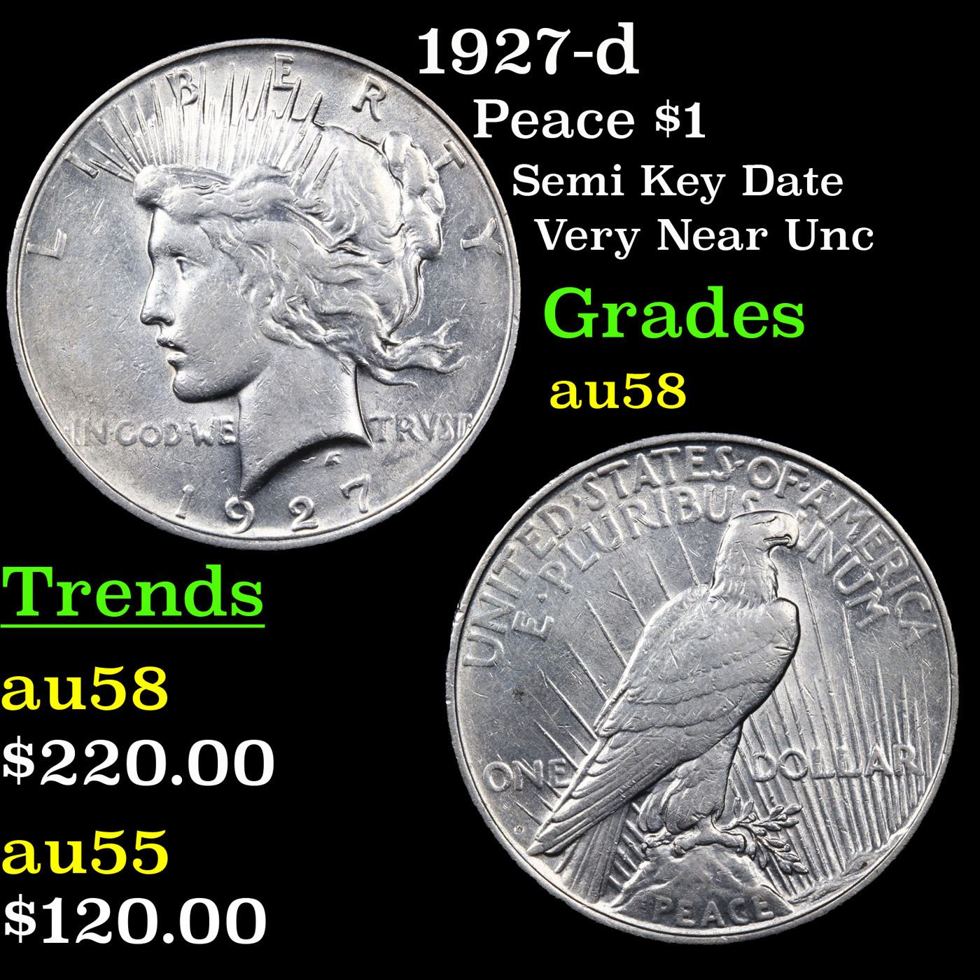 1927-d Peace Dollar $1 Graded Choice AU/BU Slider.