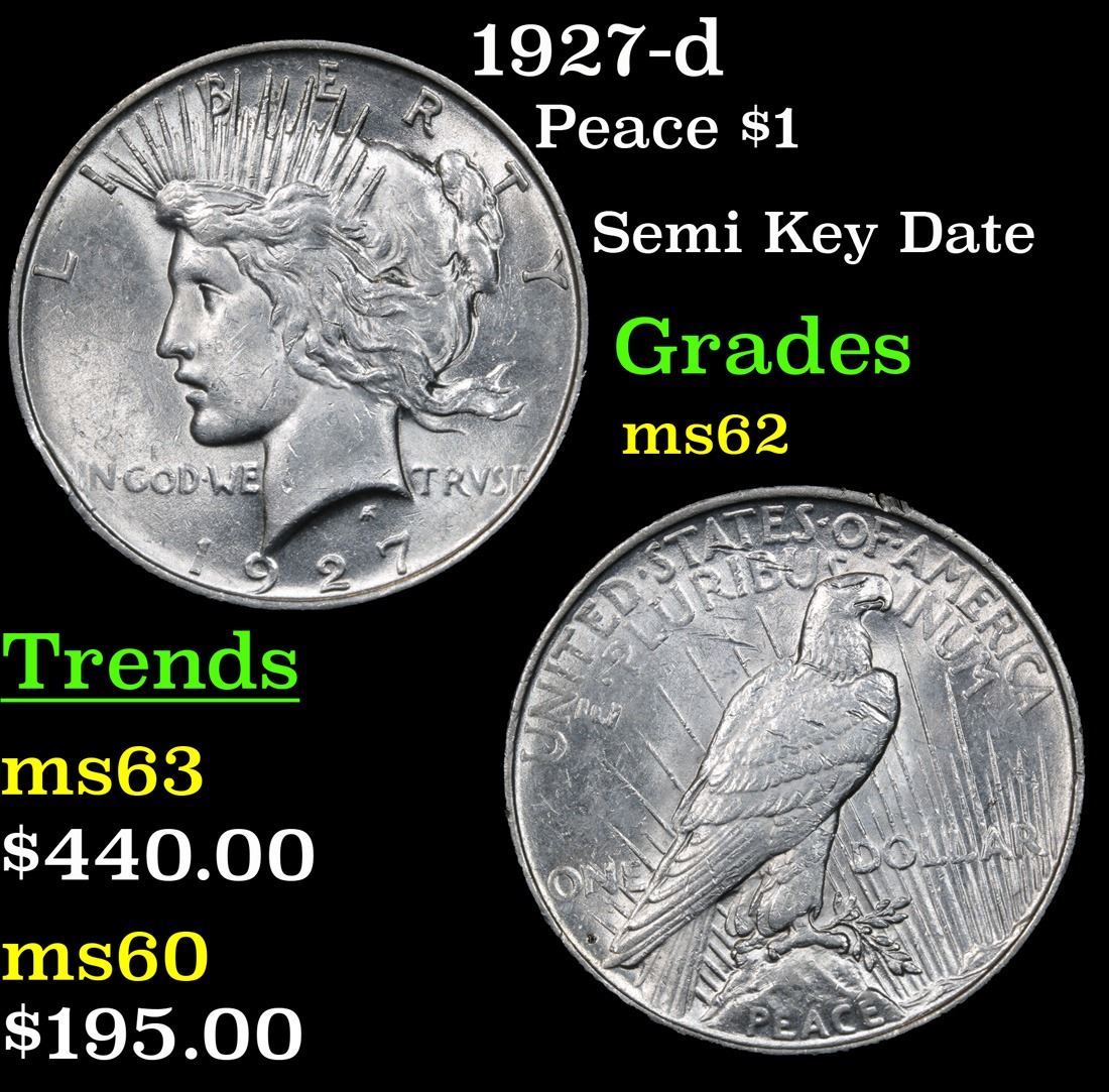 1927-d Semi Key Date . Peace Dollar $1 Grades Select Unc.