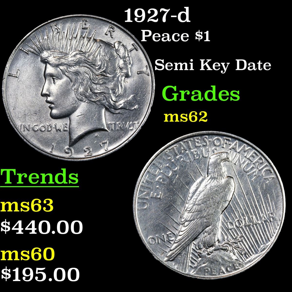 1927-d Peace Dollar $1 Grades Select Unc.