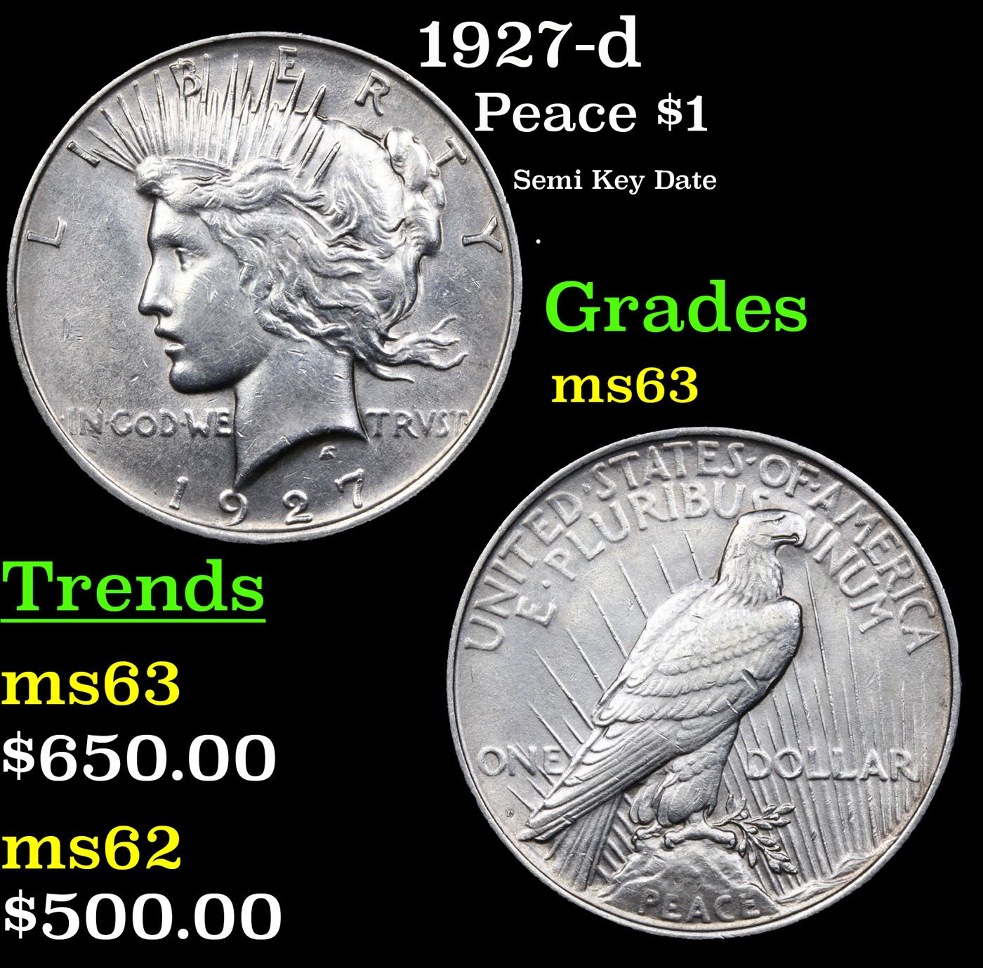 1927-d Peace Dollar $1 Grades Select Unc.