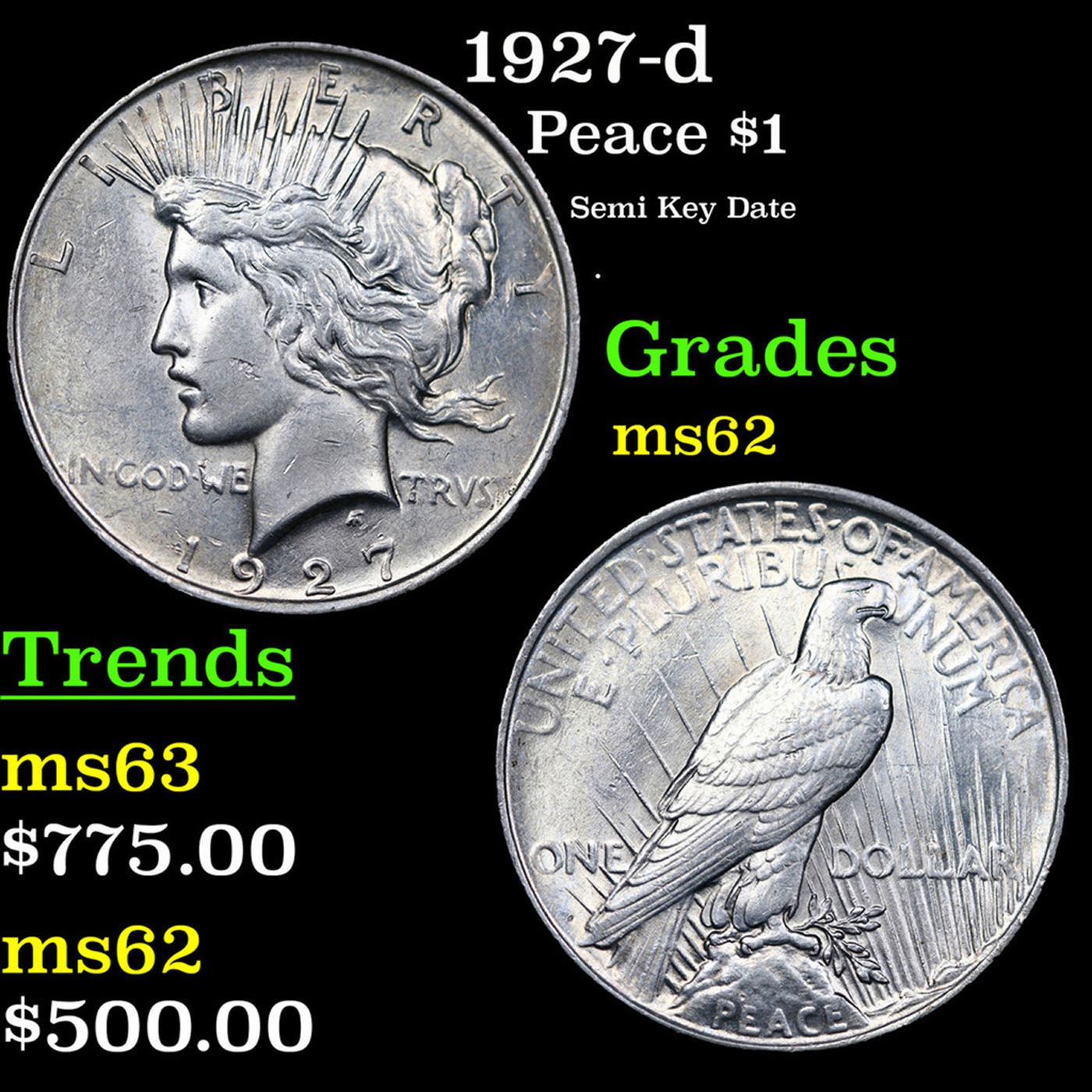 1927-d Peace Dollar $1 Grades Select Unc.