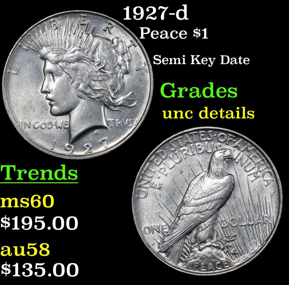 1927-d Semi Key Date . Peace Dollar $1 Grades Unc Details.
