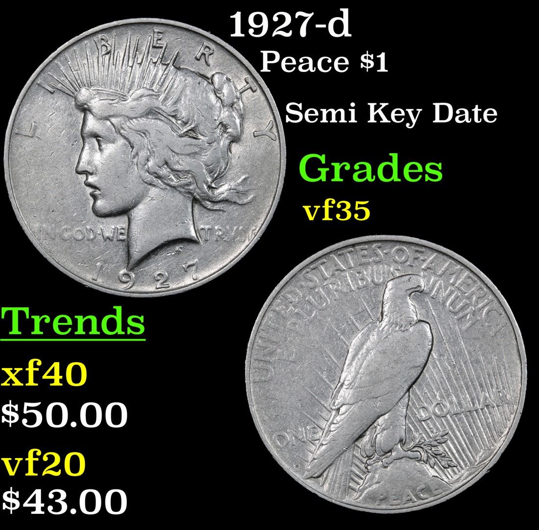 1927-d Semi Key Date . Peace Dollar $1 Grades vf++.