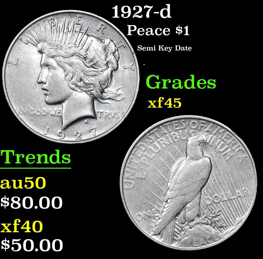 1927-d Semi Key Date . Peace Dollar $1 Grades xf+.