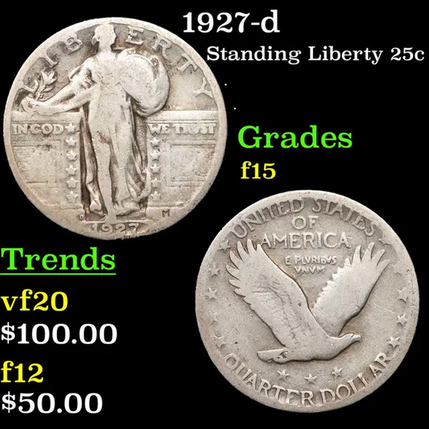 1927-d Standing Liberty Quarter 25c Grades f+.