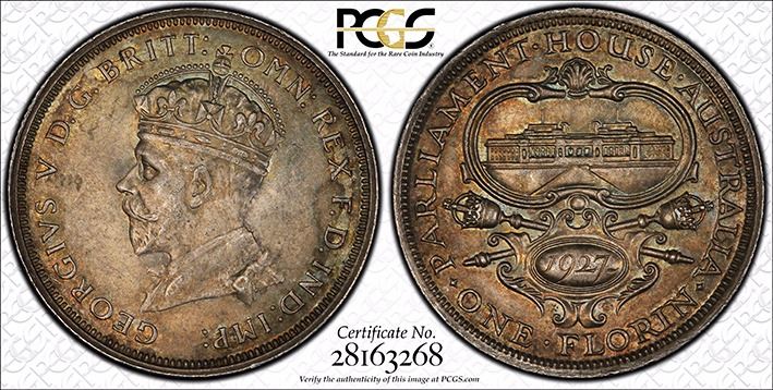 1927(m) Australian Canberra Florin - PCGS MS 64