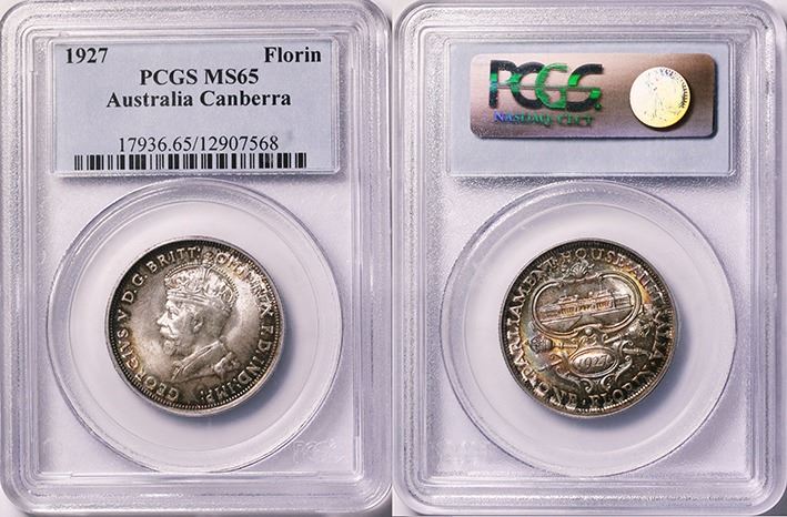 1927(m) Australian Canberra Florin - PCGS MS 65