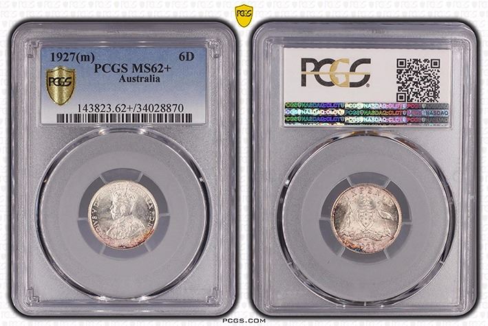 1927(m) Australian Sixpence - PCGS MS 62+