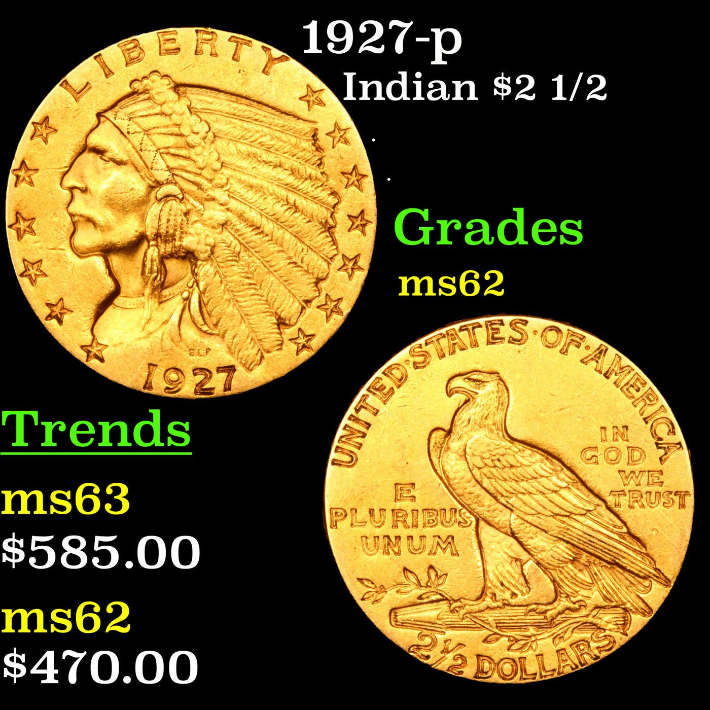 1927-p Gold Indian Quarter Eagle $2 1/2 Grades Select Unc.
